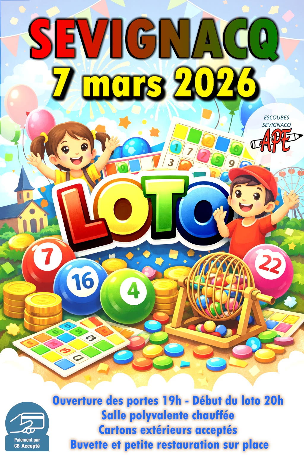 Venez nombreux samedi à la salle multi activités de Sévignacq pour le grand Loto de l'Association des Parents d'Eleves des Ecoles de Sévignacq et Escoubes